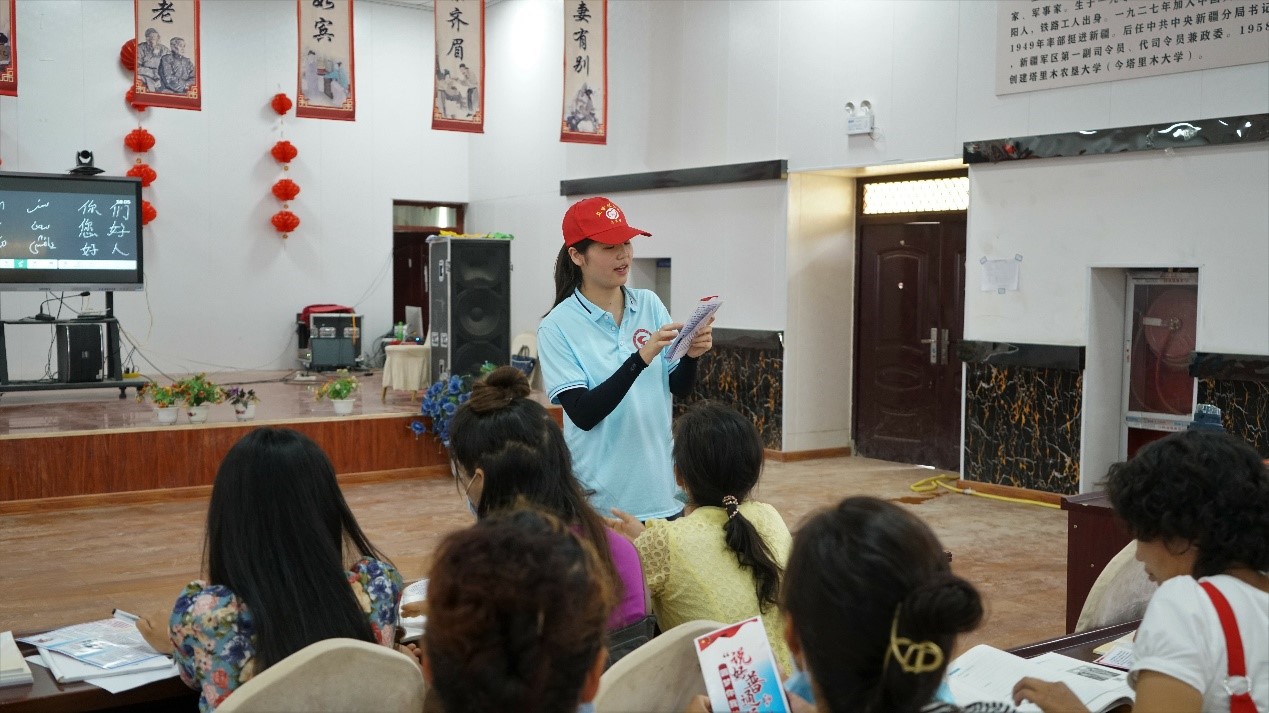 四海同音,各族同心。服务队通过发放问卷、个别访谈等方式,深入当地社区、村庄、巴扎等地,调查国家通用语言普及率,并通过发放宣传册、开展学习培训,积极推广国家通用语言,促进文化大融合、民族大团结。