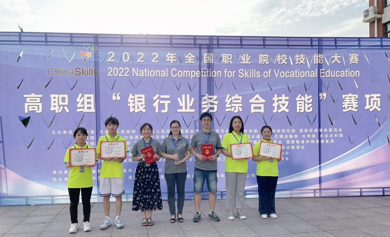 2022年8月14日至15日,2022年全国职业院校技能大赛高职组“银行业务综合技能”赛项在山东青岛山东外贸职业学院举行。来自全国各省、市、自治区的55支参赛队伍共220名参赛选手参加此次比赛。经过2天紧张激烈的角逐,bat365财税金融学院龚奕、李雅琴老师指导的黄雪娟、姚鑫、马赟、陈鸿艺4名同学最终荣获“团体一等奖”。两位老师获得优秀指导教师奖。