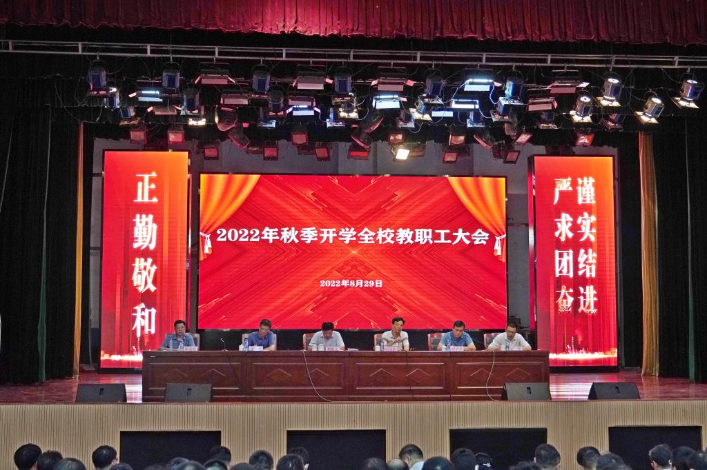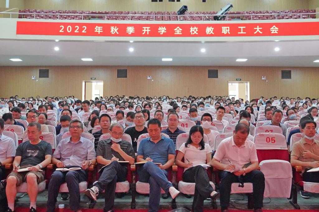 8月29日上午,bat365在英才交流中心召开了2022年秋季开学教职工大会。党委书记、校长刘彪文和在家领导班子成员出席,全体教职员工参加大会。会议由党委副书记、常务副校长何先应主持。