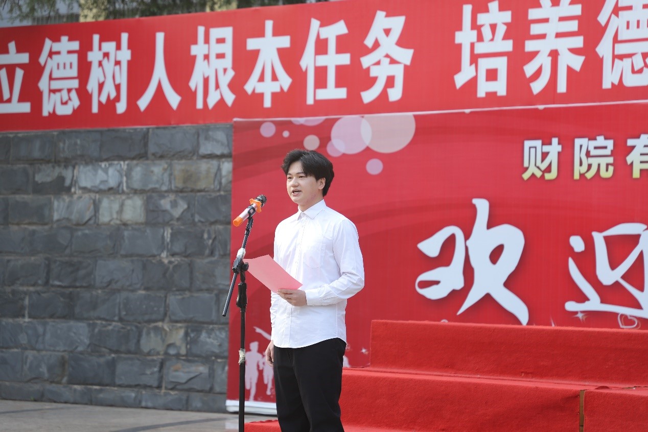礼毕,学生代表刘浩杨带来《愿以寸心寄华夏,且将岁月赠拼搏》的演讲,字字铿锵,句句激昂,将对祖国的热爱、对新时代的歌颂化作优美的语言尽情展现。