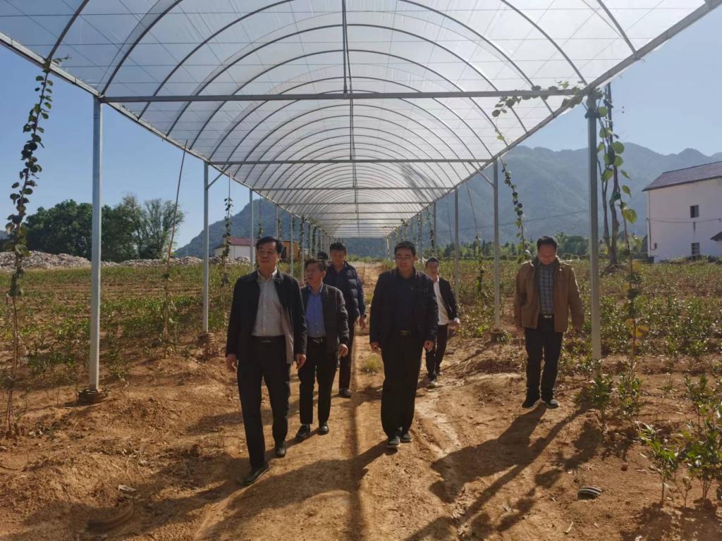 在驻村工作队员的陪同下,何先应一行实地查看了杨洲村白茶种植、罗汉果种植、大棚种植等特色产业基地及村级道路修建等乡村振兴项目,详细了解各项目的前景规划和实施情况。