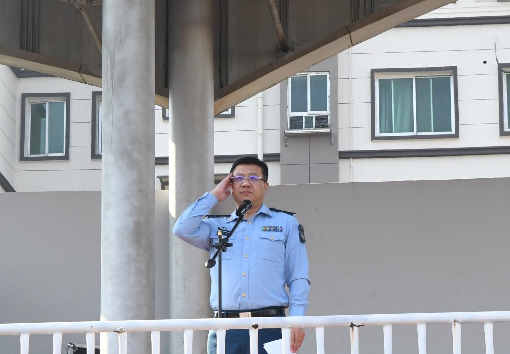 部队领导穆金晶同志在讲话中指出,大学生军训是国防教育的重要组成部分,是增强国防意识、涵养家国情怀的重要途径,是磨练个人意志、传承红色基因的重要方式,希望参训同学发扬不怕苦不怕累的精神,积极主动迎接各种困难和挑战,刻苦训练、锤炼意志,以饱满热情和高昂斗志出色完成训练任务。