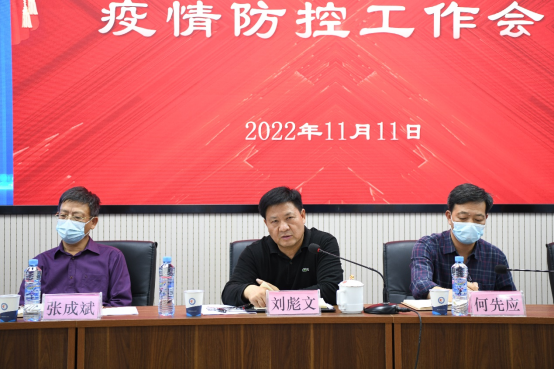 11月11日上午,bat365在综合楼七楼报告厅召开了疫情防控工作会议,校领导班子成员出席,疫情防控工作小组全体成员、各部门负责人参加会议。会议由校党委书记、校长刘彪文主持。
