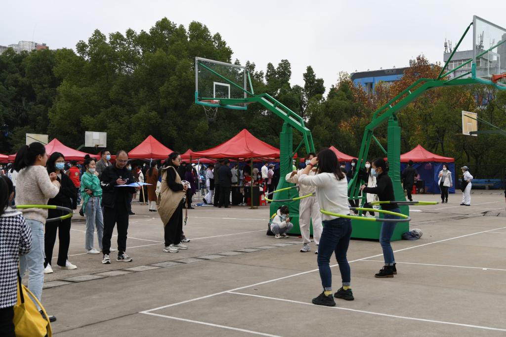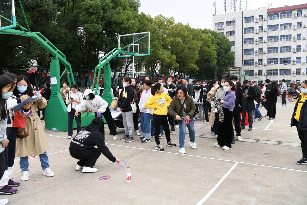 初冬时节,凉意袭人,但趣味运动会现场,气氛紧张热烈而又趣味十足,每一位教职工笑容满面,精神抖擞,朝气蓬勃,遵循“趣味交流第一,比赛竞技第二”的原则参与到各项比赛中:滚铁环接力分秒必争,跳大绳大家步伐整齐,慢骑自行车“蜗速”前进;呼啦圈、踢毽子、套圈、飞镖、保龄球、抽陀螺和跳皮筋等项目各展所能。现场欢声笑语,加油声此起彼伏,大家仿佛又回到了童年的快乐时光,个个神采奕奕,尽显运动活力。