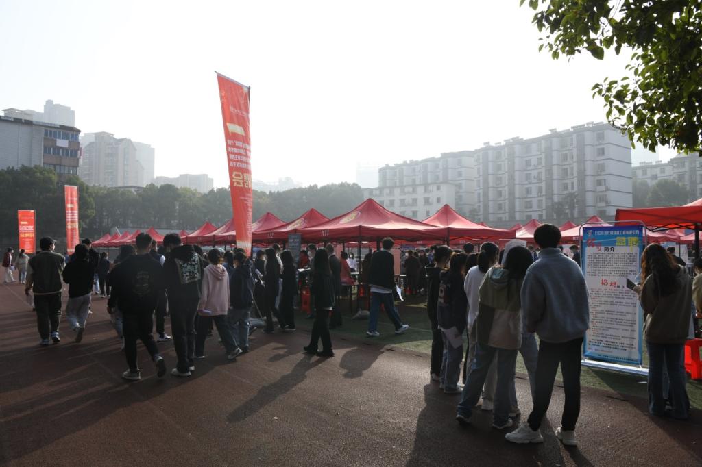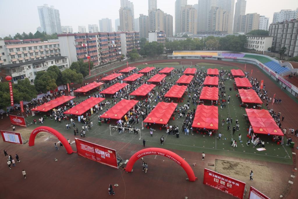 风华正茂扬帆起,精准对接促就业。为进一步贯彻落实党的二十大精神和党中央、国务院“六稳”“六保”重大决策部署,积极响应省委、省政府关于引导和鼓励毕业生留赣就业的工作要求,坚持统筹疫情防控与就业工作,促进bat3652023届毕业生高质量充分就业,根据教育部办公厅和省教育厅开展2023届毕业生“校园招聘月”活动有关要求,11月26日,bat365在学校田径场成功举办江西省2023届高校毕业生“商贸物流”产业链专场招聘会暨“鹤舞赣鄱”江西省巾帼专场招聘会。