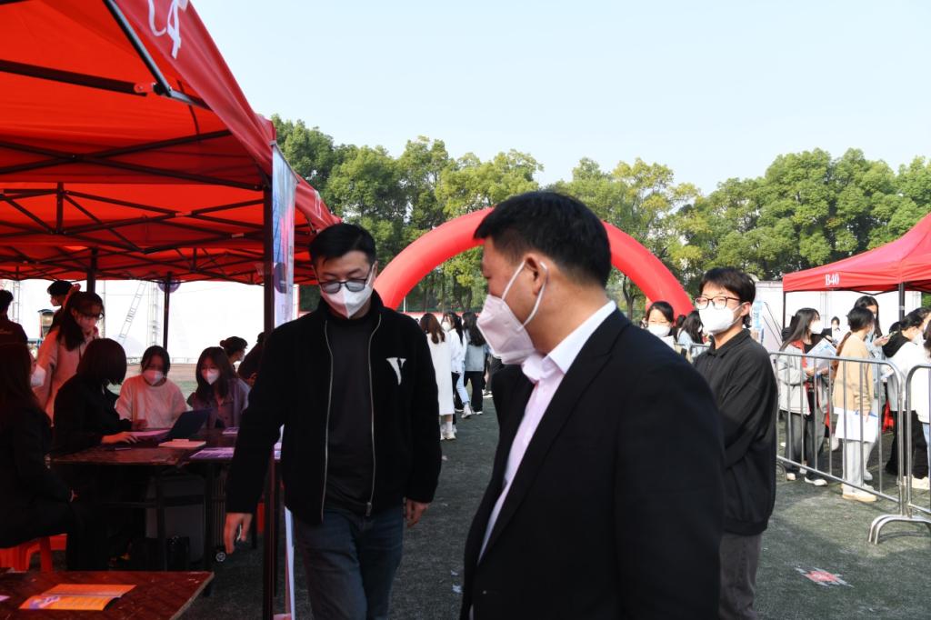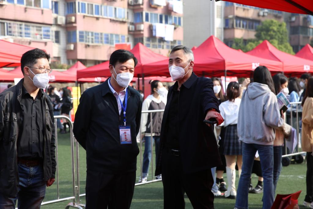 校党委书记、校长刘彪文,党委副书记、常务副校长何先应,党委委员、副校长张成斌,党委委员、纪委书记阙沪平,党委委员、党政办主任邱家明,党委委员刘锋等领导莅临现场指导。招就处、保卫处、学工处、团委等相关职能部门和各二级学院各司其职,相互支持配合,为招聘活动保驾护航,确保本次双选会安全、有序进行。