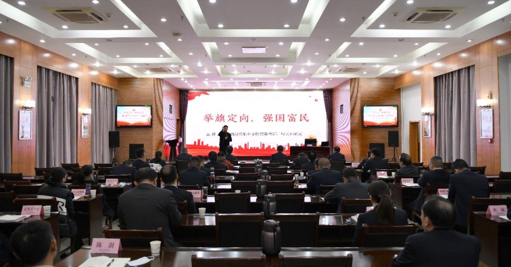 为深入学习宣传贯彻党的二十大精神,11月29日,校党委书记、校长刘彪文教授应邀赴中国农业银行九江市分行以《举旗定向 强国富民》为题作“学习党的二十大精神”的主题宣讲。参加宣讲会的有:中国农业银行九江市分行全体班子成员,市分行本部机关处室副科级以上干部,部门党员代表和退休党员代表。