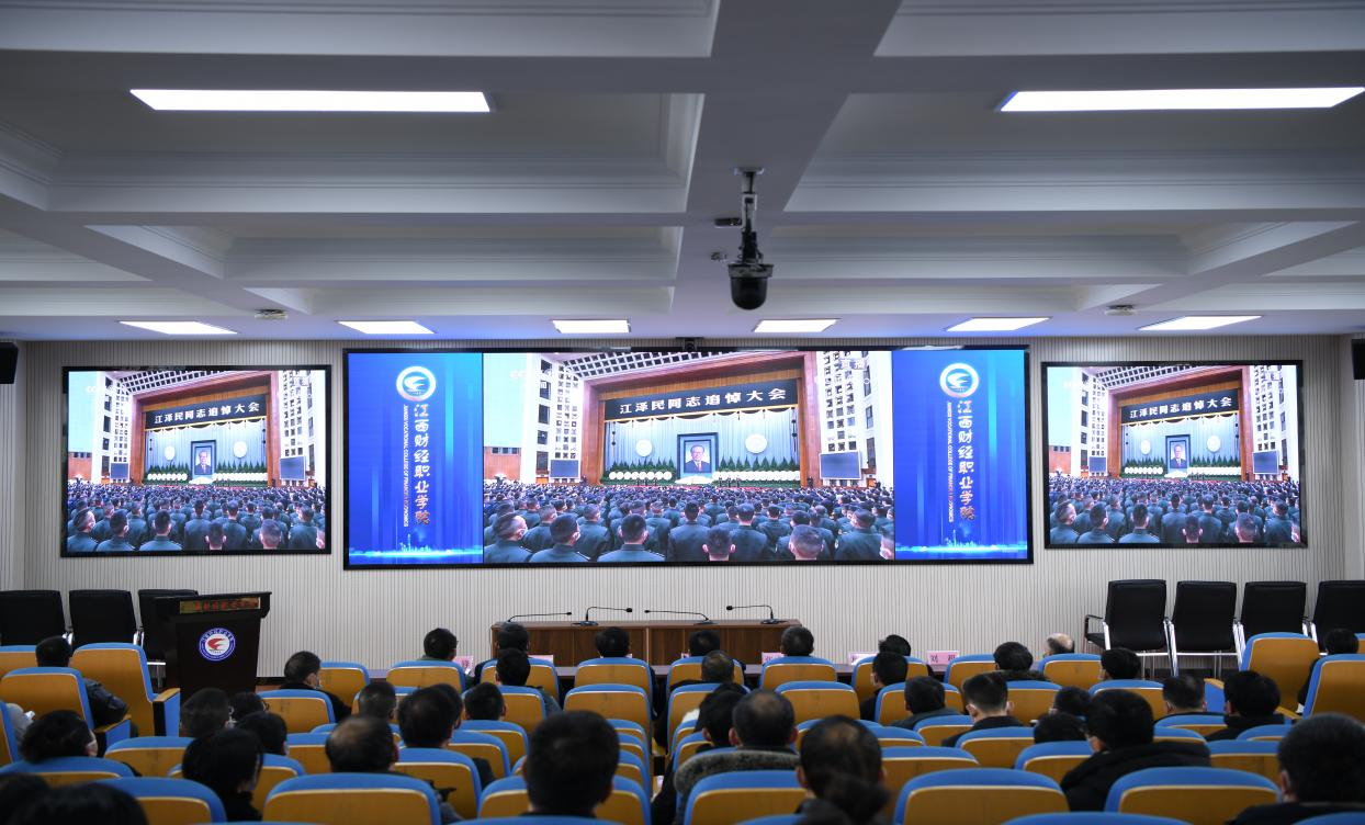 12月6日上午10时,党中央、全国人大常委会、国务院、全国政协、中央军委在北京人民大会堂隆重举行江泽民同志追悼大会。bat365在综合楼七楼新时代文明实践中心同步收看直播,学校领导班子成员、全体中层干部、师生代表共计300余人参加。学校下半旗,全体默哀3分钟悼念江泽民同志逝世。
