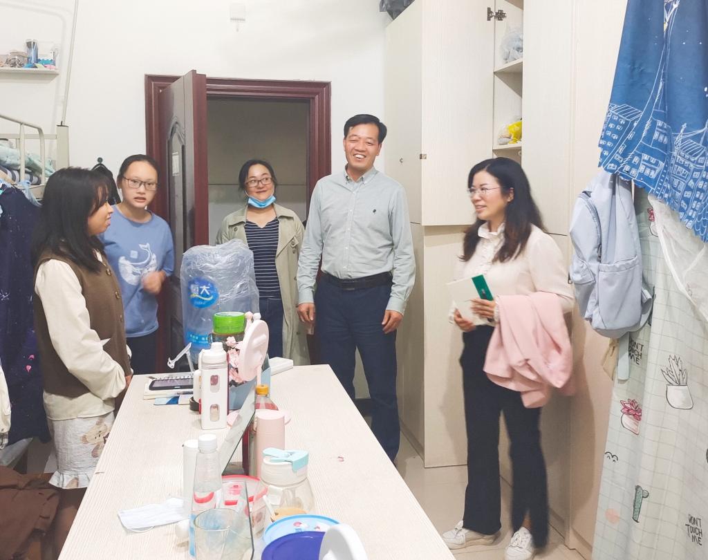 在走访宿舍的过程中,何先应与同学们进行了近距离、亲切的交流,详细了解同学们的身心状况、思想动态和近期学习、生活情况。针对近期天气变化、气温骤降,何常务询问同学们棉服、被褥是否充足,提醒大家注意防寒保暖。同时嘱咐大家正确对待疫情,要一如既往地按照学校统一部署,注意开窗通风,保持身心健康,不放松、不泄劲,有任何困难随时联系学院老师。何常务与学生们面对面、零距离的谈心,犹如春风化雨般地滋润着学生们的心田。