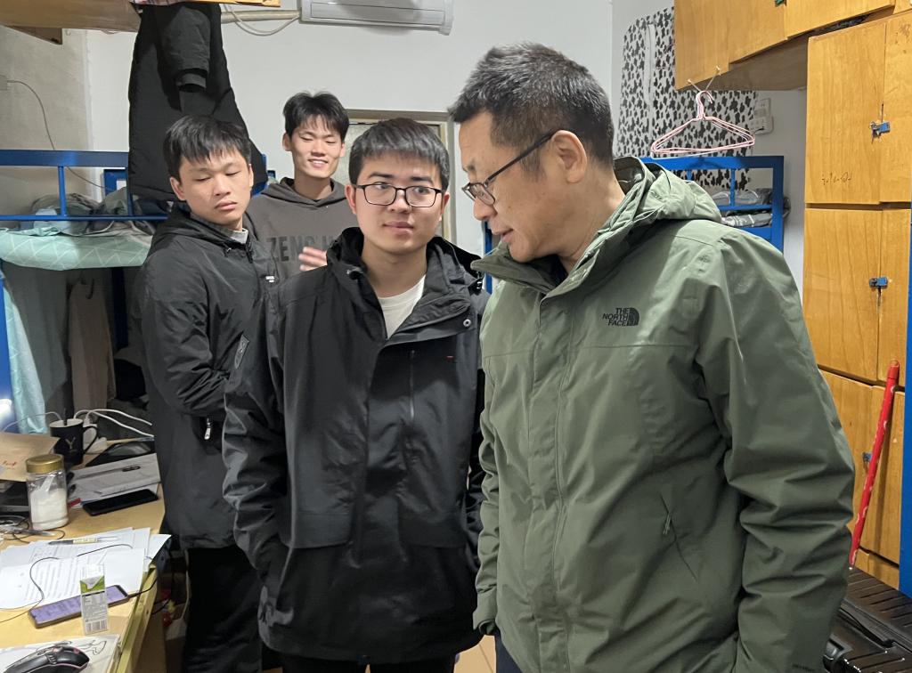 走访期间,校党委委员刘锋对毕业班同学们在寝室卫生的保持上给与了高度赞扬,刘锋委员指出:良好的寝室环境反映的是同学们良好的自我约束、自我管理能力以及自身综合素质,希望同学们能把这种严谨、自觉的好习惯带到未来的工作当中,秉承“正 勤 敬 和”的校训精神,在人生的新阶段继续勇毅前行,为实现第二个百年奋斗目标、实现中华民族伟大复兴的中国梦踔厉奋斗,让青春在新征程中开出绚烂之花。