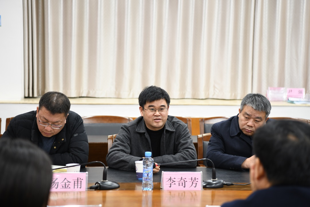 12月14日下午,浔阳区委常委、组织部部长李奇芳一行来校调研指导工作,在1201党委会议室进行了座谈交流,区人社局局长杨金甫、民政局局长冷彧、人民路街道党工委书记陈哲夫及副书记张学石随行,校党委书记刘彪文、校长彭慧、副校长张成斌、党委委员邱家明及相关部门负责同志参会。