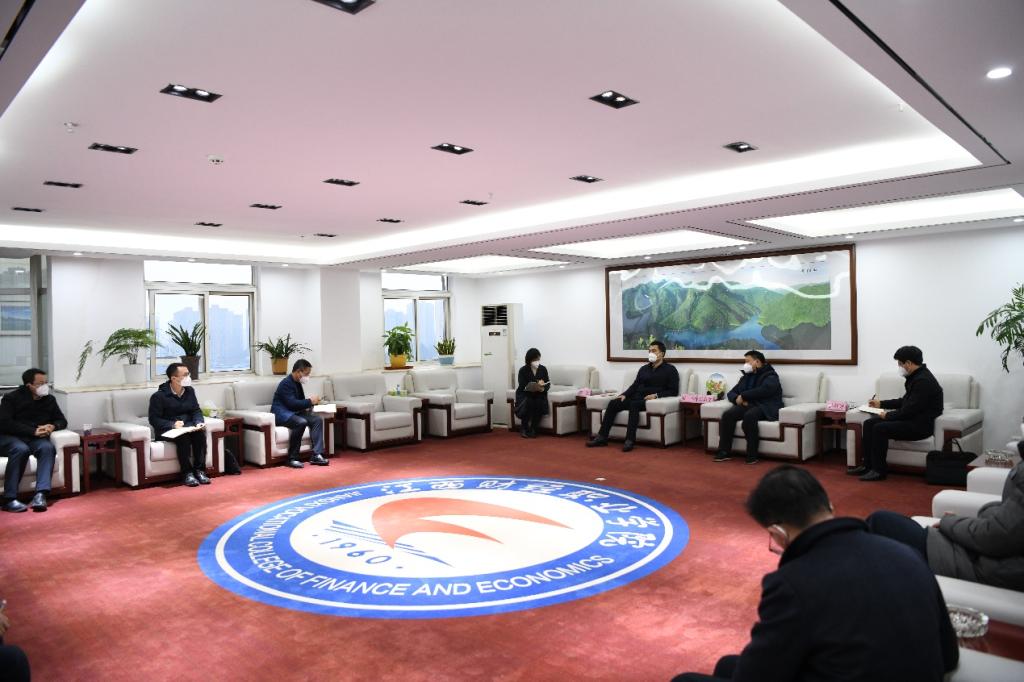刘彪文书记代表学校对张宁书记一行的来访表示热烈欢迎,对浔阳区一直以来给予学校的支持和帮助表示感谢,并从学校疫情防控工作、社区帮扶工作、文明创建工作、新校区建设、校友会建设、“双高”建设、学校办学层次的提升等方面作了简要介绍,并表示希望进一步加强“校政企行”四维一体的平台发展,打造职教高地,为地方经济社会发展做出学校的应有的贡献。