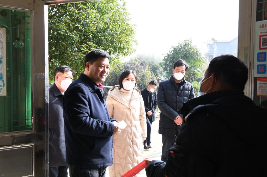 为认真落实习近平新时代中国特色社会主义思想和国家乡村振兴战略,扎实推进巩固脱贫攻坚成果与乡村振兴有效衔接工作,1月4日,校党委书记刘彪文、校长彭慧带队深入bat365定点帮扶村武宁县杨洲乡杨洲村实地调研,并开展春节前夕走访慰问。校党委副书记、常务副校长何先应,校党委委员邱家明,以及党政办公室、工会、文化旅游学院有关负责同志,杨洲村驻村工作队和村委干部陪同走访调研。