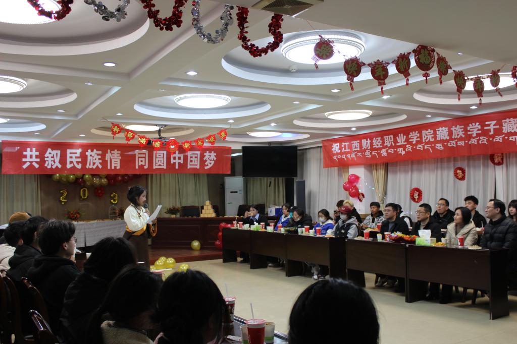 联欢会在一首《祝福歌》和一段热情洋溢的锅庄舞拉开帷幕。随后,校党委副书记、校长彭慧向藏族学生致以新年祝福,她希望藏族同学们在新的一年中,像爱护自己的眼睛一样维护民族团结,推动各民族文化融合,学校将继续为广大少数民族同学创造良好的学习生活条件和更多的成长成才机会。她祝愿同学们新年吉祥如意,学业进步,早日成为可堪民族复兴大任的优秀人才。