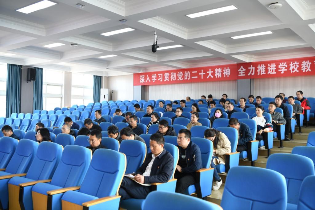 会上,就贯彻落实党的二十大精神和习近平总书记重要讲话精神,推动学校事业高质量发展进行了专题研讨。王怡然、张先河、刘双红、李智、李俊峰、陶雪飞、张正德等七位同志就做好教育教学改革、干部队伍建设、意识形态和安全生产等方面工作作了交流发言。