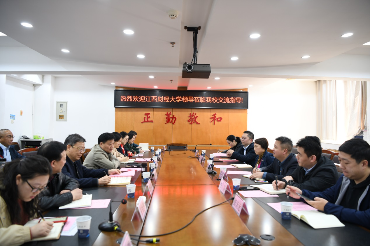 3月7日,江西财经大学会计学院党委书记黄文德、金融学院党委书记王琪和工商管理学院党委书记贺三宝等一行6人来bat365开展联培调研交流工作。bat365党委书记刘彪文、党委副书记、校长彭慧以及党委委员、副校长张成斌在综合楼1201会议室热情接待了财大一行,招生就业处、本科部、会计学院、金融学院、和工商管理学院等部门主要负责人以及本科班主任、辅导员参加了本次调研交流座谈会。