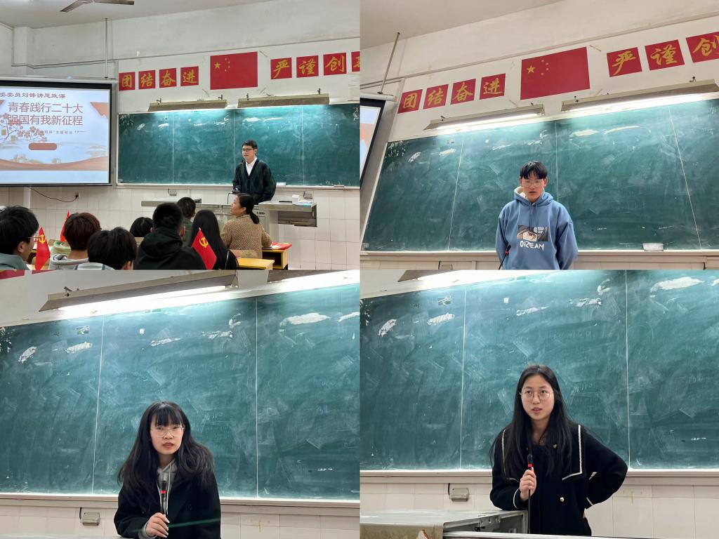 主题班会上,班主任李捷首先带领同学们一起学习了习近平总书记在中国共产党第二十次全国代表大会上的报告《高举中国特色社会主义伟大旗帜为全面建设社会主义现代化国家而团结奋斗》的主要内容,欧阳祖文、夏仕慧、周海媚、万云飞、刘雅玟等同学分别围绕“爱国、团结、奋斗、科学、互助”五个关键词结合自己的学习和生活情况,分享了各自践行党的二十大精神的思考和实践。