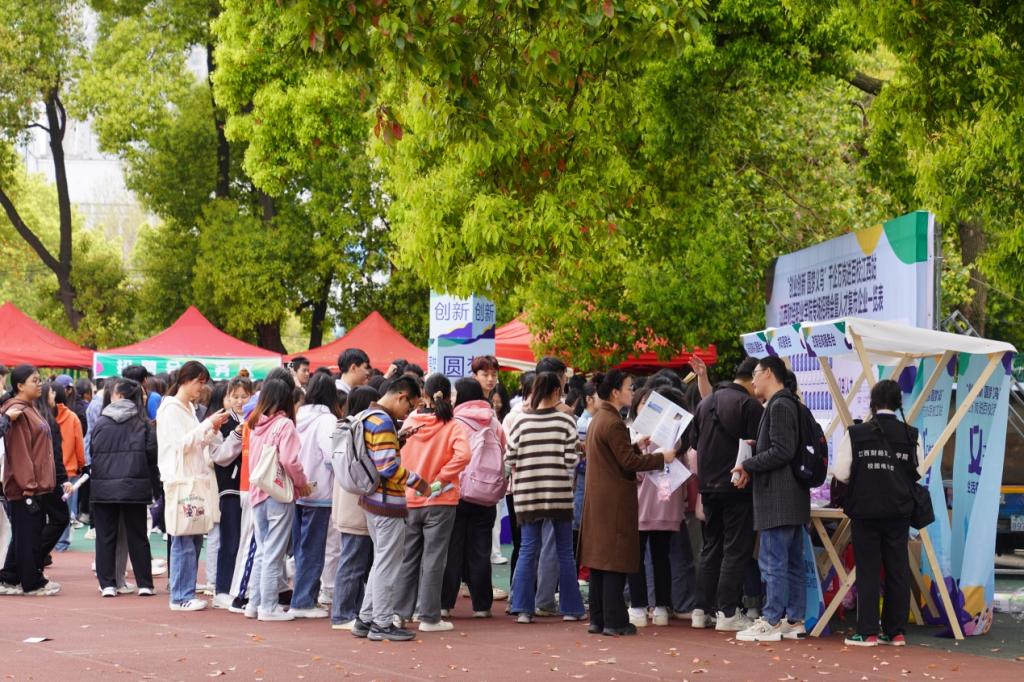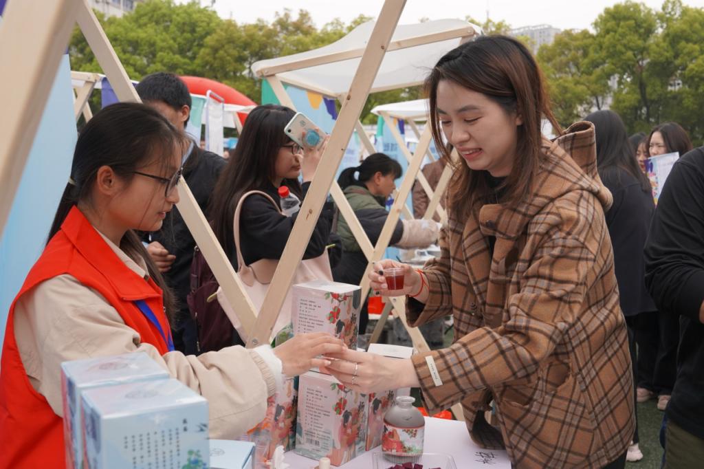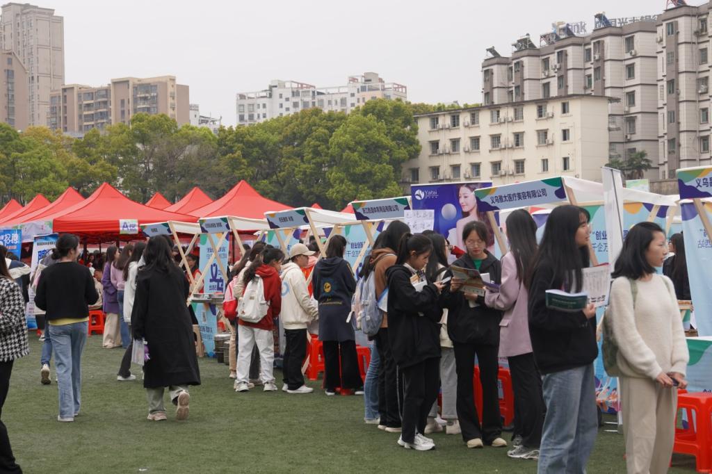 为提高招聘会的趣味性,增强对毕业生的吸引力,本次招聘会特别开展义乌人才集市活动,10个摊位为同学们带来了义乌市的特色小吃和文创品牌,让同学们能够边找工作边吃美食,在求职的过程中充分感受义乌的城市特色和亮点。