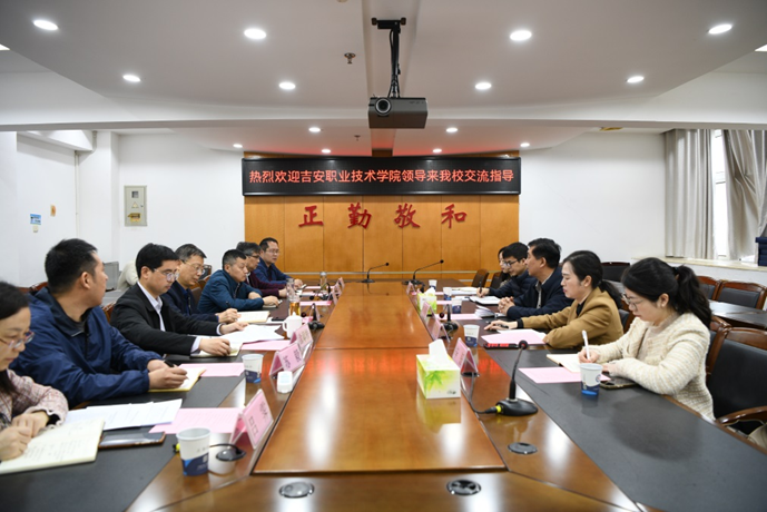 4月4日,吉安职业技术学院党委委员、副院长李家林和党委委员、吉安市高级技工学校校长陈霄虹等一行5人来bat365调研交流。bat365党委委员、副校长张成斌热情接待了李家林一行,双方人员在综合楼1201会议室举行座谈交流,bat365组织部、人事处、教务处等相关部门负责人和有关同志参加了座谈会。