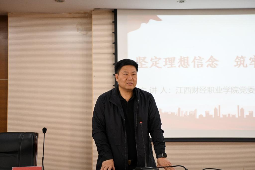 刘彪文以《坚定理想信念 筑牢安全底线》为主题,从“习近平新时代中国特色社会主义思想的追溯”“中国式现代化理论体系创新成果”“当前的金融、经济形势”“强化金融安全,促进经济的安全发展”四个方面深刻阐释了党的二十大精神的实践意义。