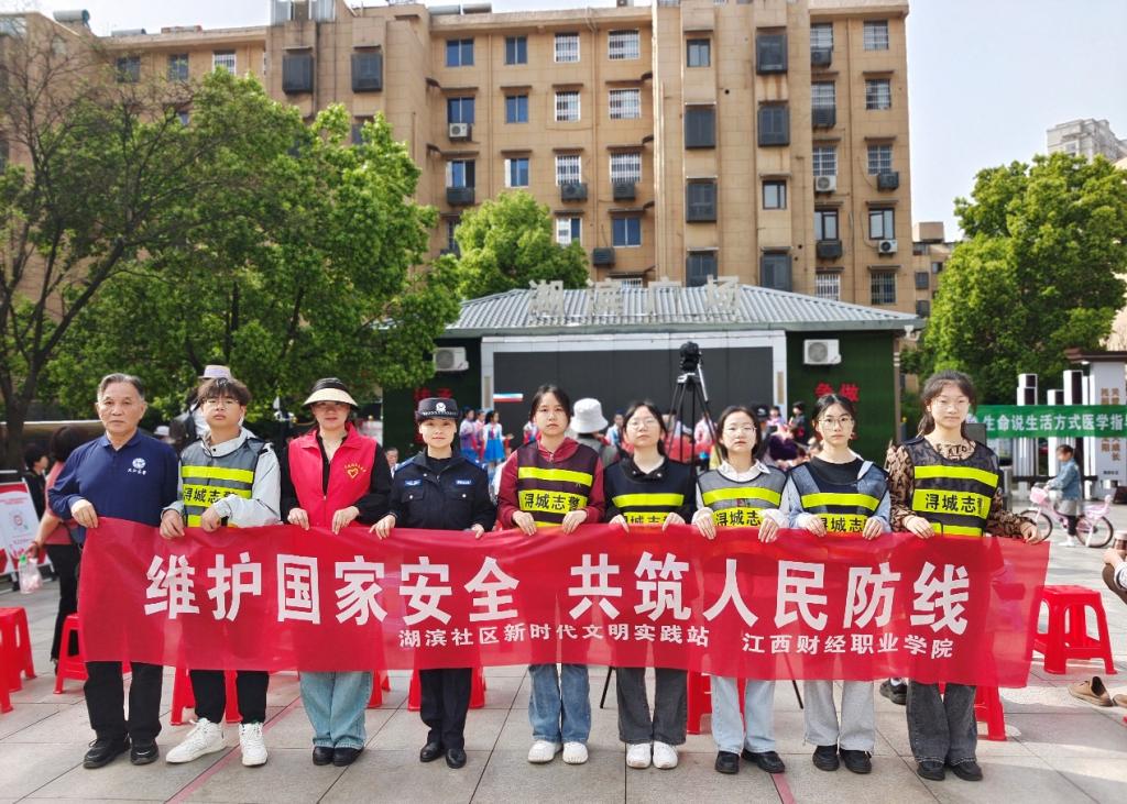 活动二:走进社区。学校联合湖滨社区,利用“法律明白人广场”开展国家安全教育日宣传活动,志愿者向社区居民发放了《国家安全法》《中华人民共和国反恐怖主义法》《中华人民共和国境外非政府组织境内活动管理法》等相关法律法规的宣传手册,助力法治宣传教育和总体国家安全观教育走进社区群众、进一步提高社区居民对国家安全、社会稳定重要性的认识和抵御安全风险的能力。