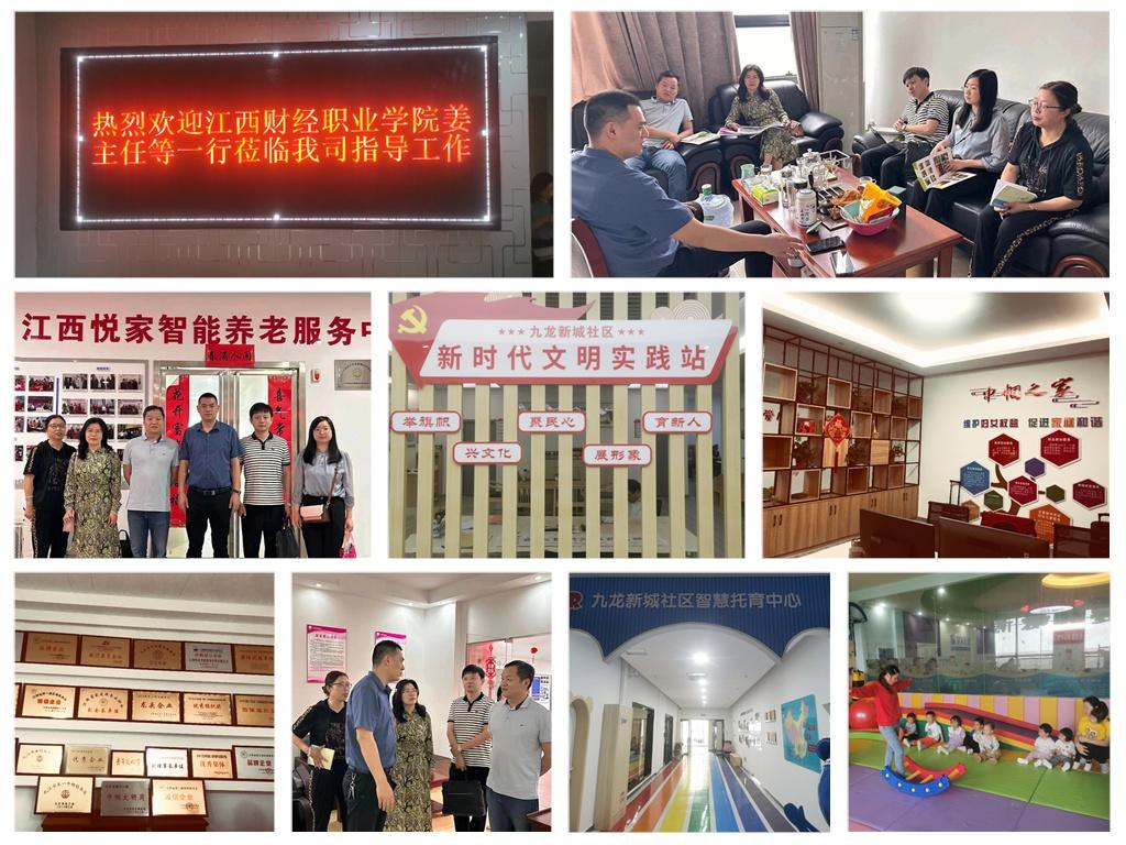 调研组一行首先来到位于八里湖新区九龙新城社区的九江市家庭服务业协会,听取了协会会长关于家政服务行业基本情况的介绍,并了解到,目前市场上知识技能型和专家管理型的现代家政服务与管理专业人才紧缺;年轻人因为和老一辈育婴观念分歧及上班时间冲突等因素,智慧托育逐渐兴起。调研组还参观了九江新城社区新时代文明实践站、智能养老服务中心和智慧托育中心,并同相关负责人进行了交流。随后调研组来到八里湖新区社会发展局,该局负责人介绍了民政工作的主要内容和新区社会工作基本情况,同时指出,社会工作在发达城市和地区比较普及,但在我市尚处于发展阶段,社区布点还不完善,专业的社会工作者人才缺乏,并传达了中共中央、国务院《党和国家机构改革方案》提出要组建中央社会工作部来推动新时代社会治理现代化的精神。