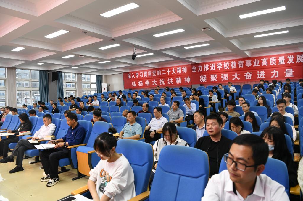 校党委副书记、校长彭慧作动员讲话。彭慧指出,自去年开展“双提升月”活动以来,在全校上下的共同努力下,取得了阶段性成效,各方面工作持续向上向好转变。教学质量和学生素质提升是一项基础工程,要常抓不懈。在全党上下深入开展学习贯彻习近平新时代中国特色社会主义思想主题教育之际,开展好今年的“双提升月”活动具有十分重要的意义。一是思想上高度重视。加强师德师风建设,提升教师教书育人能力素质,培养德智体美劳全面发展的学生,是我们推动党的二十大精神落地,深入开展主题教育的重要举措,也是提高办学能力和水平的必然要求。我们要从时代的高度、长远的角度,充分认识这项工作的重要意义。二是责任上全面压实。教务处、学工处应履行好牵头责任,抓好统筹协调、工作推进;各二级学院、各部门要履行好主体责任,紧盯时间节点、工作要求和活动内容,抓好本单位相关活动的组织工作,并在学校总体方案的基础上,结合自身实际,制定具体的落实方案。三是行动上协同联动。素质提升是一项系统工程,涉及学校工作的方方面面,要牢固树立全校“一盘棋”“一条心”的思想,变“单打独斗”为“多元融合”,形成“上下联动、左右协同、共同推进”的工作格局,做到“主题内容协同”“活动组织有力”“比学赶超有招”。
