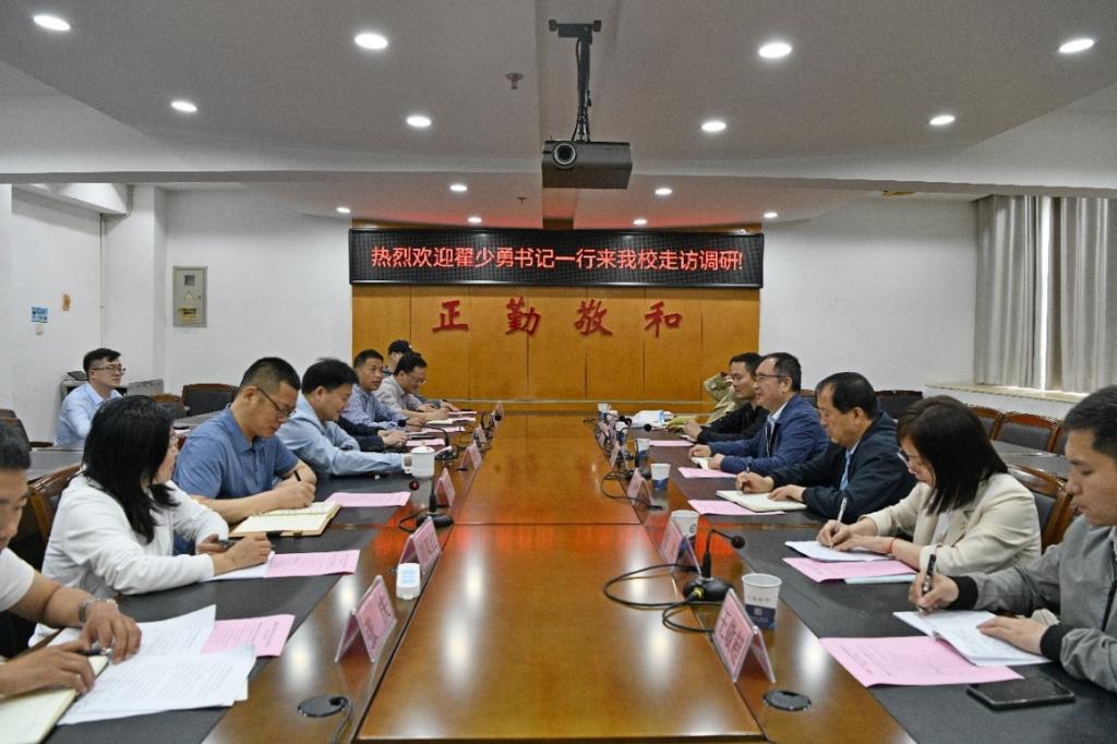 5月10日下午,江西省委政法委副书记、新疆驻赣工作组党委书记、组长翟少勇一行来到学校进行调研并召开座谈会。党委书记刘彪文,党委委员、副校长邱家明,党委委员刘锋,和党委统战部、党委宣传部、学生工作处、安全保卫处负责人以及新疆派驻教师西尔艾力.卡德尔一同参与调研座谈。
