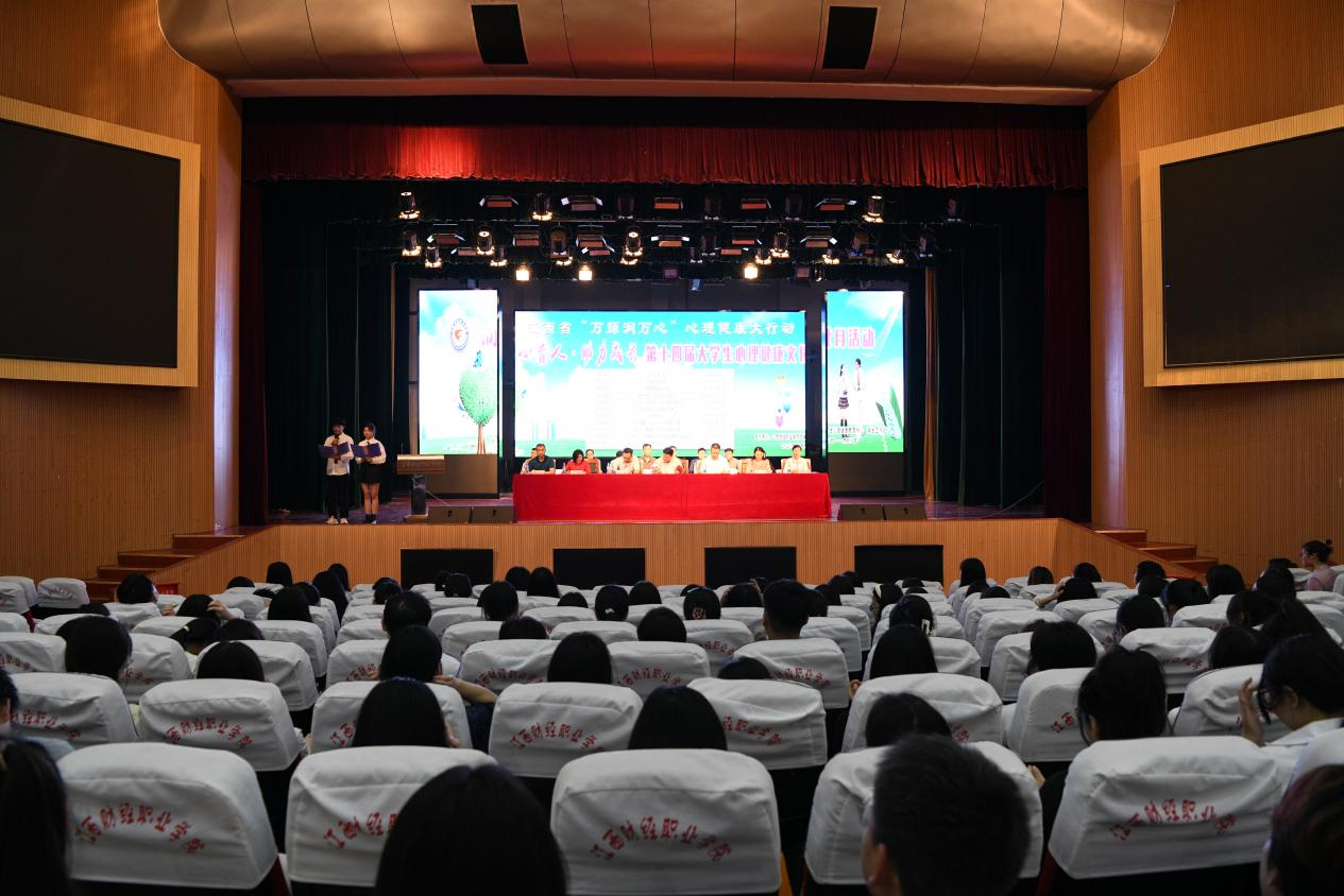 根据教育部等十七部门联合印发的《全面加强和改进新时代学生心理健康工作专项行动计划(2023 - 2025年)》文件精神,为深入推进江西省教育厅组织开展的全省高校“万师润万心”心理健康大行动,促进bat365心理健康教育的开展,把心理育人活动与校园文化建设紧密结合,营造和谐、向上的校园文化氛围,5月16日下午,由大学生心理健康教育中心和学生工作处主办的第十四届大学生心理健康文化月开幕式在英才交流中心隆重举行。本届文化月活动以“润心育人,助力成长”为活动主题。
