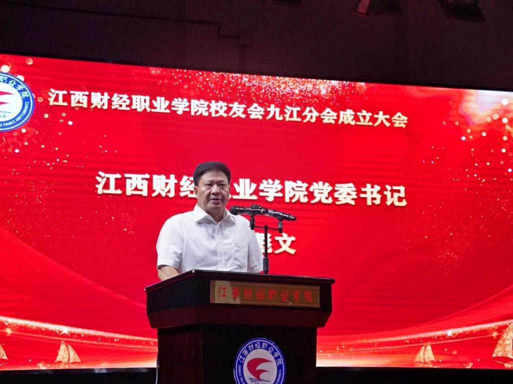 刘彪文代表学校致辞。他表示,校友是母校育人成果的最好标尺,也是母校最靓丽的名片和最重要的财富。他希望校友会加强校友之间、校友和母校之间的密切联系,用心、用情、用力做好校友工作,为校友与母校之间开展交流和合作提供有力支撑和组织保障;希望各位校友在“正勤敬和”校训精神的引领下,秉承“真诚平等、团结互助、奋斗共享”的校友会宗旨,把九江校友分会建设成为有效的、高质量的,有感情、有温度、有能力的组织,助推学校发展新局面,携手书写学校发展更加辉煌更加美好的新篇章。