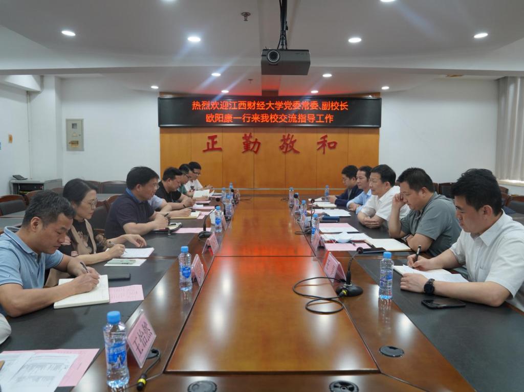近日,江西财经大学党委常委、副校长欧阳康带队来bat365调研指导联培本科就业工作,随行人员包括招生就业处处长柳晨、会计学院党委副书记肖安生、金融学院党委副书记王昊、工商管理学院学工办主任张天元等。bat365党委书记刘彪文,党委委员、副校长张成斌在综合楼1201会议室热情接待了江西财大一行,招生就业处、本科部、会计学院、财税金融学院、工商管理学院等部门主要负责人参加了本次调研座谈会。