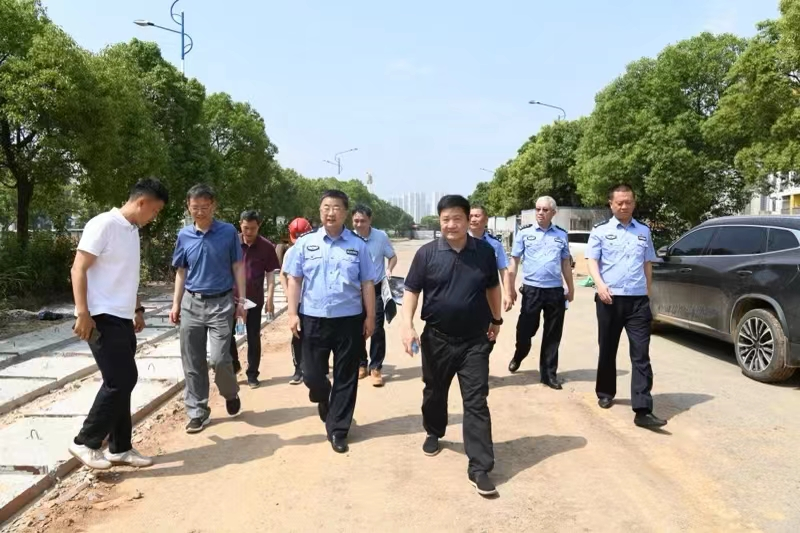 6月1日上午,九江市公安局交管支队党委副书记、副支队长杨方一行来到正在建设的八里湖新校区调研,针对新校区建设和安全管理等有关事项进行现场办公。学校党委书记刘彪文、八里湖新区住建城管局局长樊金龙及学校校园建设管理处、安全保卫处、学生工作处等部门负责人陪同。