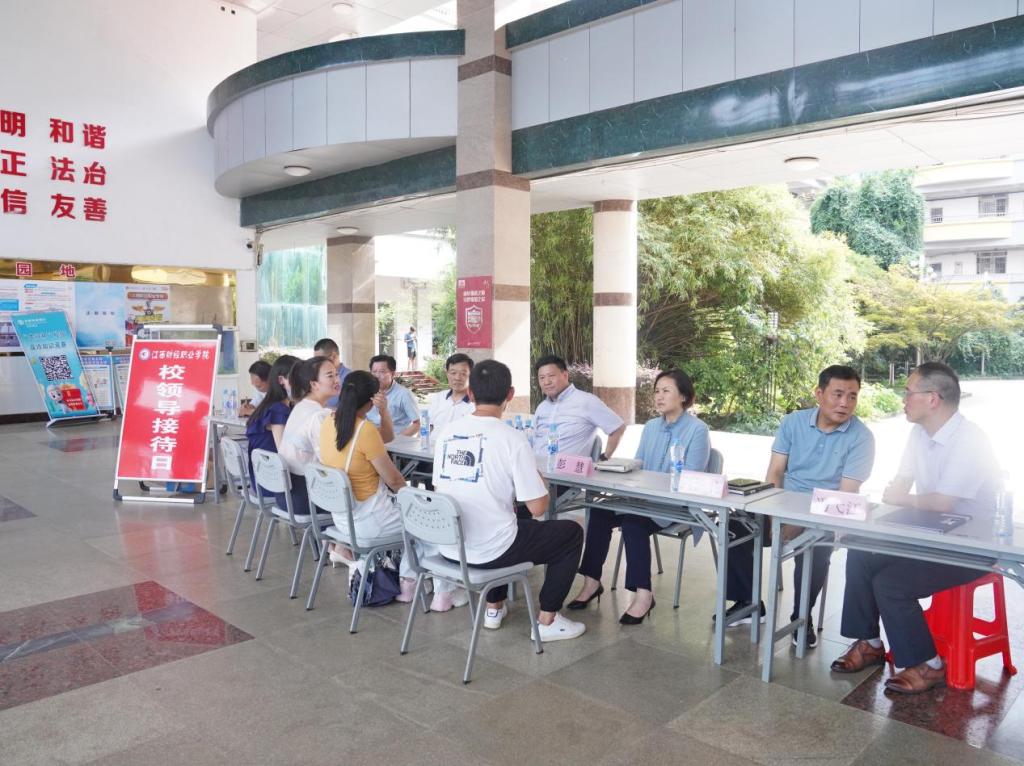 6月29日下午,bat365在教学楼东大厅举行“校领导接待日”活动。党委书记刘彪文、校长彭慧和全体在家班子成员参加了本次活动。