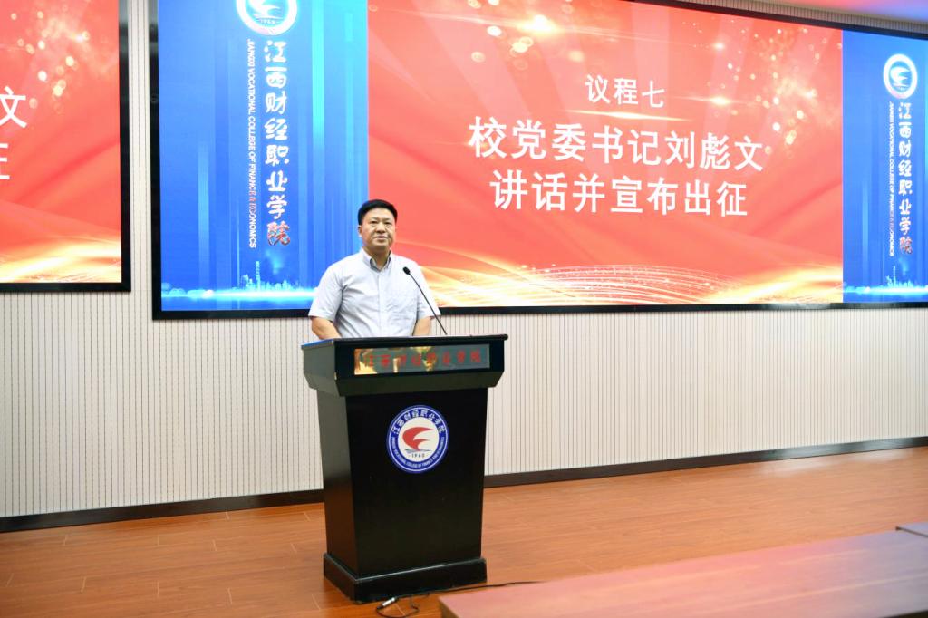 为深入推进学习贯彻习近平新时代中国特色社会主义思想主题教育,引导和帮助广大青年学生在社会课堂中“受教育、长才干、作贡献”,6月29日下午,学校在综合楼七楼报告厅举行了“学习党的二十大 永远跟党走 奋进新征程”2023年暑期“三下乡”社会实践活动出征仪式。校党委书记刘彪文,党委副书记、常务副校长何先应,党委委员刘锋出席,各二级学院党总支负责同志、各实践队指导老师及团队成员共200余人参加。仪式由校团委副书记廖国臣主持。