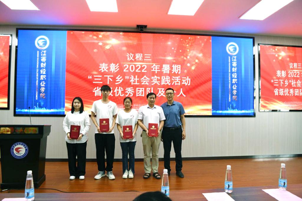 仪式上播放了2022年暑期“三下乡”社会实践活动视频。刘锋为2022年暑期“三下乡”社会实践活动省级优秀团队及个人颁奖。
