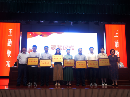 会议举行了先进基层党组织的颁奖仪式。审计处刘栗斌、马克思主义学院刘洋利分别代表新、老党员在大会上发言。会上由校团委徐颖领誓,新党员进行了入党宣誓,老党员重温了入党誓词。