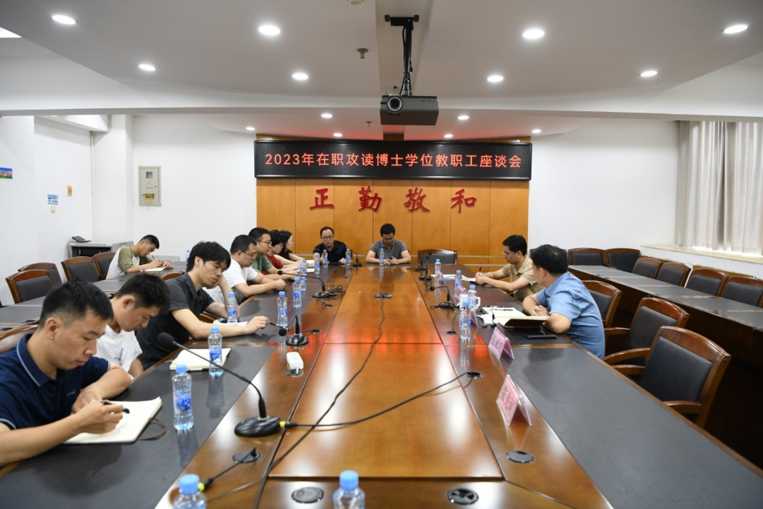 8月2日上午,bat365在综合楼1201会议室召开2023年在职攻读博士学位教职工座谈会,党委书记刘彪文出席会议并讲话。党委委员、副校长张成斌,党委委员、副校长邱家明,以及组织部、人事处负责人和有关同志参加会议。