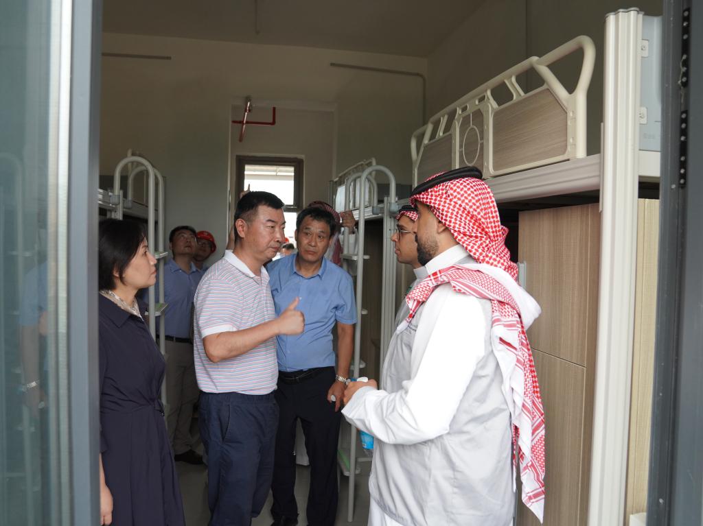 会后,沙特发展基金会代表团一行到bat365八里湖新校区施工现场,实地考察了利用贷款项目建设的图书馆和第2~4栋学生宿舍楼。