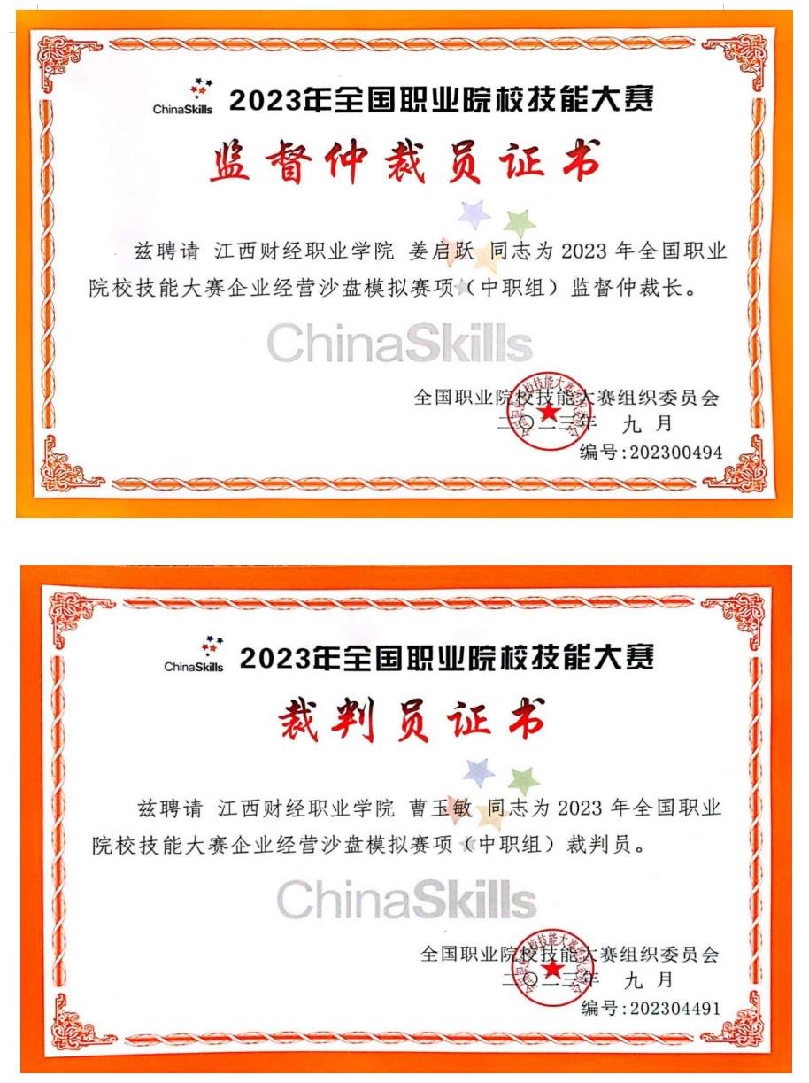 2023年9月3-4日,全国职业院校技能大赛企业经营沙盘模拟赛项(中职组)在山东临沂市高级财经职业学校成功举办。经大赛组委会遴选,bat365现代服务学院(本科部)负责人姜启跃受聘担任赛项监督仲裁长,工商管理学院教师曹玉敏受聘担任赛项裁判员。这是姜启跃老师连续三年担任该项赛事的监督仲裁长,曹玉敏老师连续两年担任赛项裁判员工作。
