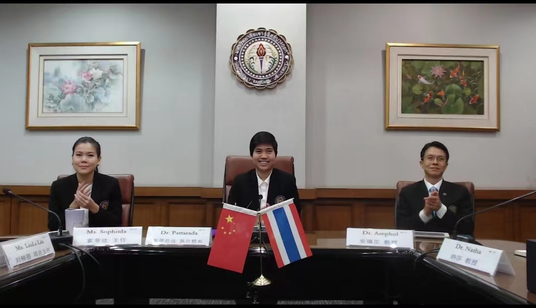 为进一步加强bat365国际交流合作,提升国际合作办学质量与水平,9月6日上午,bat365与泰国东南曼谷大学共同举行了“中文+职业技能”泰国培训项目签约启动仪式,会议以视频连线形式举行。bat365校长彭慧,泰国东南曼谷大学执行校长帕塔拉达出席仪式。