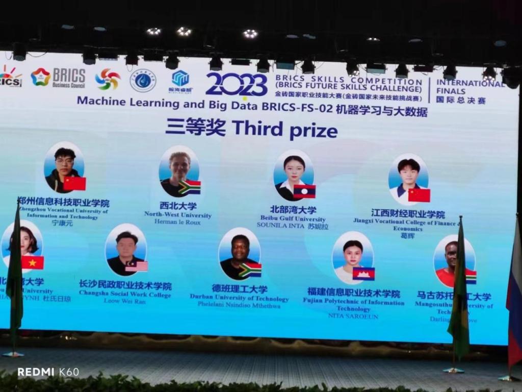 2023年11月10日,由南非高等教育与培训部、金砖国家工商理事会、南非豪登省政府主办;金砖国家工商理事会技能发展工作组、南非高等教育与培训部媒体信息通信技术署承办;金砖国家工商理事会(中方)技能发展工作组、“一带一路”暨金砖国家技能发展国际联盟、教育部中外人文交流中心为中方组织单位;金砖国家工商理事会(巴西、俄罗斯、印度)技能发展工作组为协办单位;广安职业技术学院为中方执行承办单位;重庆翰海睿智大数据科技股份有限公司作为技术支持单位为赛项提供技术保障的“2023金砖国家职业技能大赛机器学习与大数据赛项国际总决赛”在四川广安落幕,前期经过华东区域赛的角逐,bat365成功突围代表中国参加国际总决赛,本次国际总决赛吸引来自13个国家共计110支队伍参赛,经过三天的角逐,由bat365信息工程学院王奎老师指导的21软件4班葛辉同学荣获该项赛事三等奖。