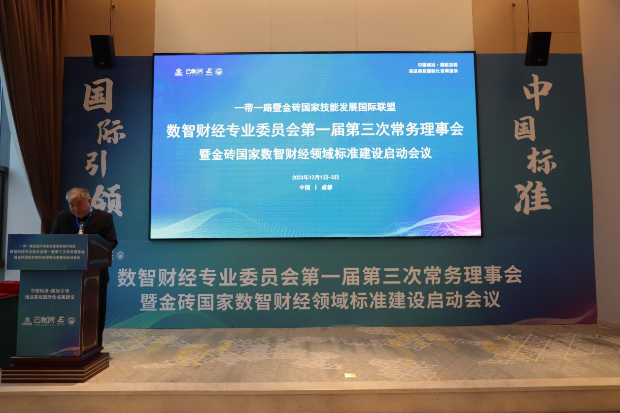 12月2日,“数智财经专业委员会第一届第三次常务理事会暨金砖国家数智财经领域标准建设启动会议”在四川财经职业学院隆重举行,来自“一带一路”暨金砖国家技能发展国际联盟、厦门市金砖未来技能发展与技术创新研究院、全国各大高职院校、财经行业企业和教育服务企业的近100人参会。bat365党委委员、副校长冯弋江应邀出席会议。会议由中国商业会计学会职业教育分会会长、“一带一路”暨金砖国家技能发展国际联盟数智财经工作委员会常务理事赵丽生教授主持。