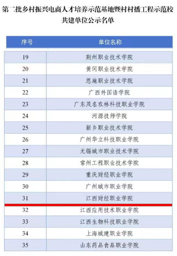 近日,农业农村部中国农业电影电视中心、全国乡村振兴产教融合联盟联合发布了《关于公布第二批乡村振兴电商人才培养示范基地暨村村播工程示范校共建单位的通知》。bat365经济贸易学院牵头、工商管理学院等二级学院联合申报的赣北乡村振兴电子商务培训基地项目成功获批立项。本次项目共吸引了国内100多家单位申报,最终35家单位获立项,包括2所本科、24所高职、6所中职、1家公司以及2个研究机构。