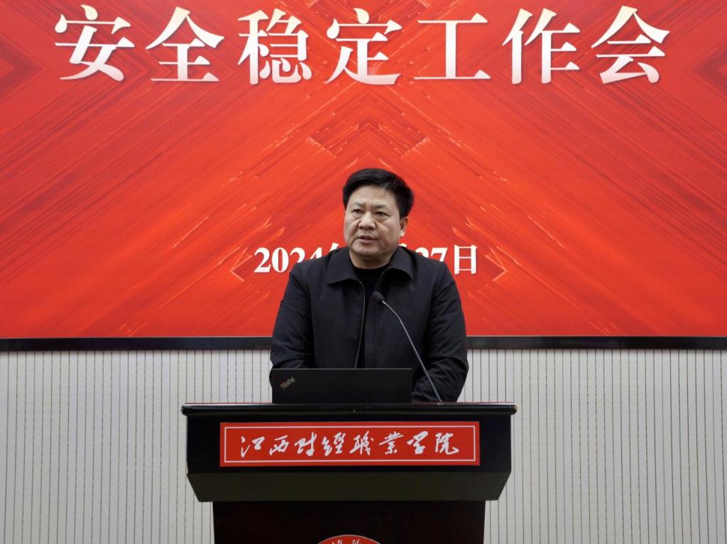 1月27日下午,学校党政班子成员和各二级学院、各部门负责人集体参加全省教育系统安全稳定工作视频会,大家认真听取省教育厅关于安全稳定工作统一部署和要求。为认真贯彻落实习近平总书记关于安全生产重要指示批示精神,落实省教育厅安全稳定工作会议精神,坚决防范校园安全事故发生,确保校园安全稳定,视频会结束后,学校立即在七楼报告厅召开全校安全稳定工作会议。校党委书记刘彪文主持会议并部署安排校园安全稳定有关工作,校领导班子成员出席,各二级学院、各部门主要负责人参加了会议。