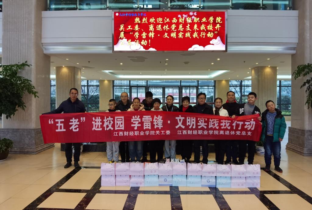为贯彻落实习近平总书记关于深入开展学雷锋活动的重要指示精神,深刻把握雷锋精神的时代内涵,更好地发挥bat365“五老”专家和党员干部的模范带头作用,2024年3月5日下午,校关工委、离退休党总支组织“五老”专家、党员干部赴九江市特殊教育学校开展了“‘五老’进校园—学雷锋文明实践我行动”志愿服务活动。校关工委常务副主任丁正员、离退休党总支书记杨郁等一行5人参加活动。