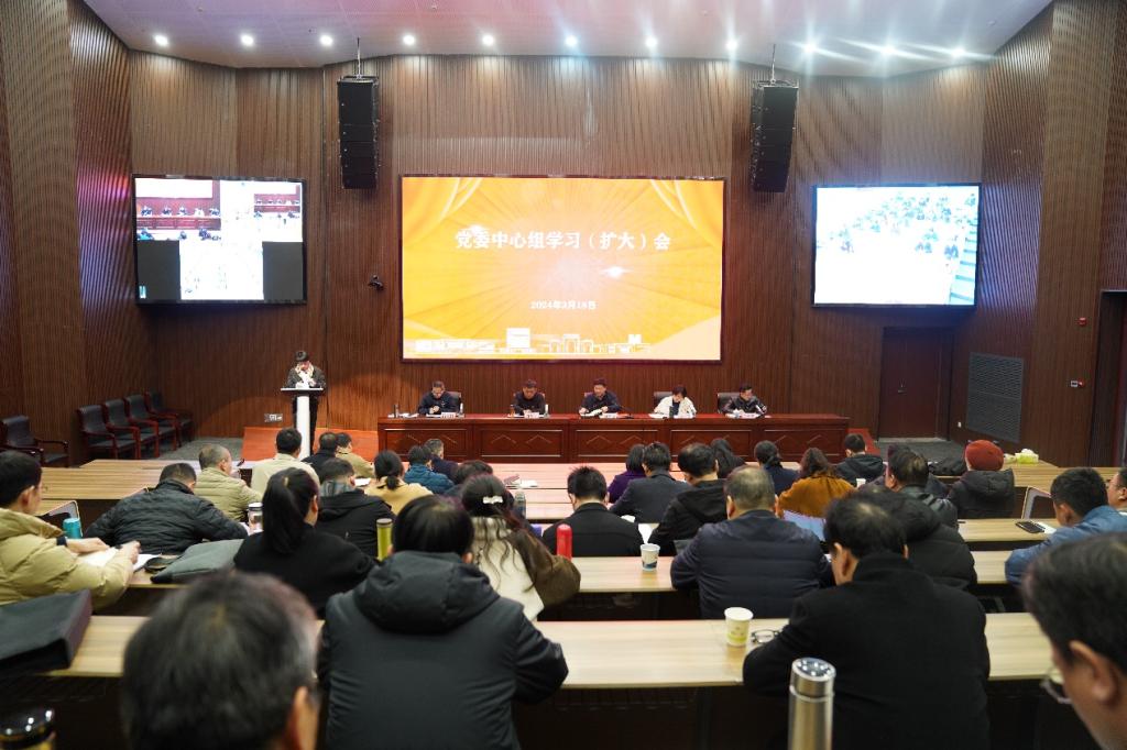 3月18日,学校在八里湖校区行政楼一楼2号报告厅召开党委中心组学习(扩大)会,学习习近平总书记在全国两会期间的重要讲话精神和全国两会精神并开展学习研讨。党委书记刘彪文主持会议,校领导班子成员、各部门负责人参加会议,浔阳校区、南昌校区视频参会。