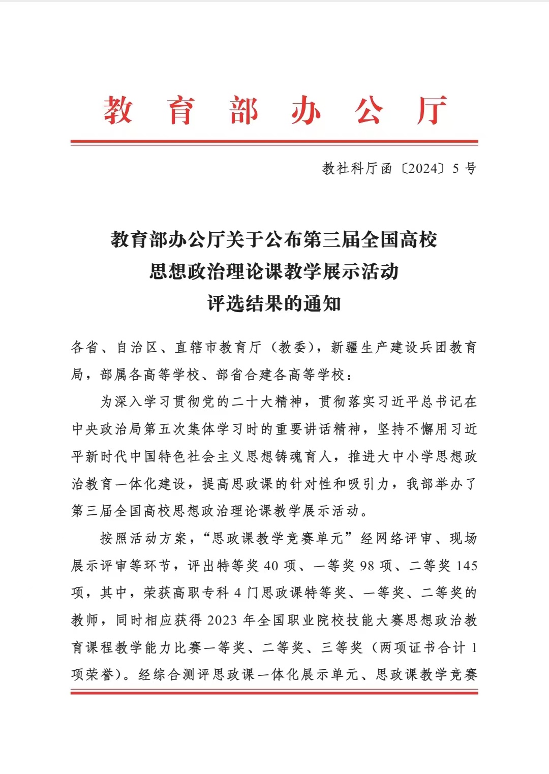 全国高校思想政治理论课教学展示活动,是目前全国高校思政课规格最高、参赛面最广、奖项含金量最高的国家级教学比赛活动。此次获奖是bat365在全国思政教学比赛的重大突破,既是全省思政课教师参赛以来的第二个特等奖,更是全省高职院校的首个特等奖。
