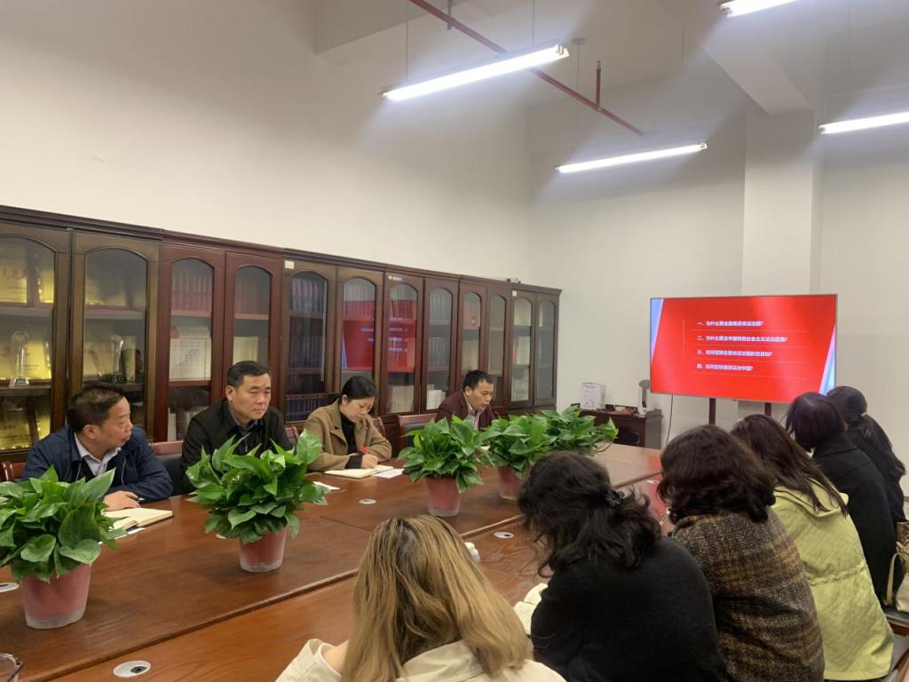 在习近平总书记主持召开学校思想政治理论课教师座谈会并发表重要讲话五周年之际,为进一步推动学校思政课高质量发展,2024年3月27日下午,马克思主义学院在八里湖校区一号教学楼B501会议室举行“习近平新时代中国特色社会主义思想概论”课本学期第三次集体备课会,校党委委员、纪委书记阙沪平参加并提出要求。备课会由“习近平新时代中国特色社会主义思想概论”课教研室负责人江国钰主持,胡娟、康卫平老师对第八、九专题进行展示。