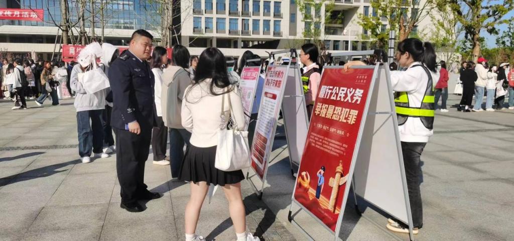 活动现场,宣传人员通过悬挂宣传横幅、陈列海报展板、发放宣传手册、现场普法等方式,向广大师生进行了国家安全、反恐防暴、扫黑除恶、防范非法宗教和邪教、反电信网络诈骗、解读《江西省平安建设条例》等法治宣传教育,吸引了大批师生驻足观看。