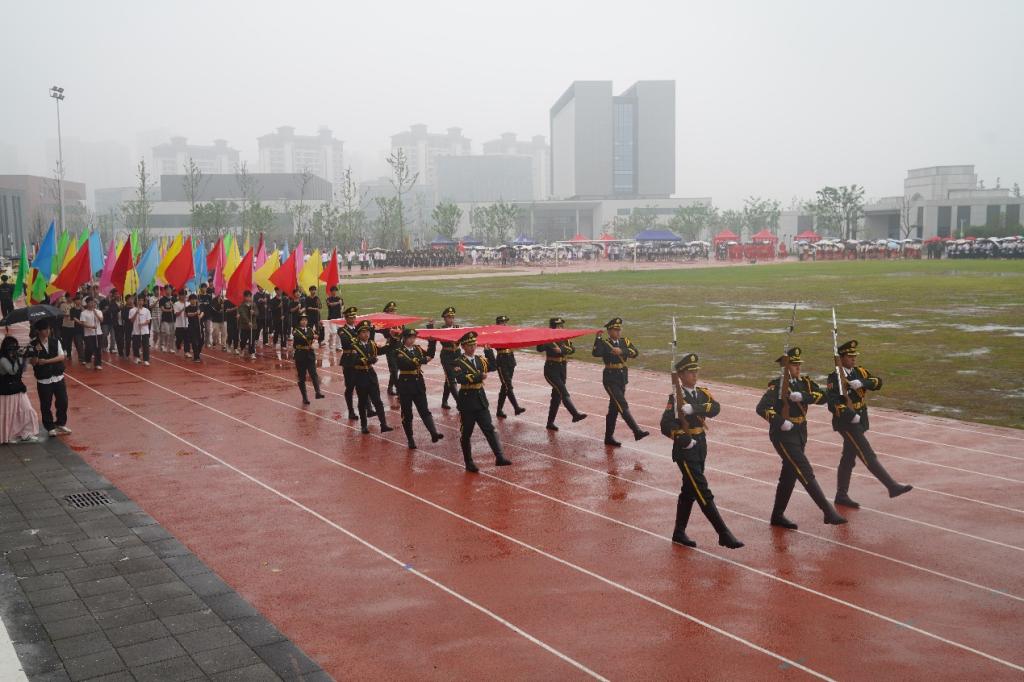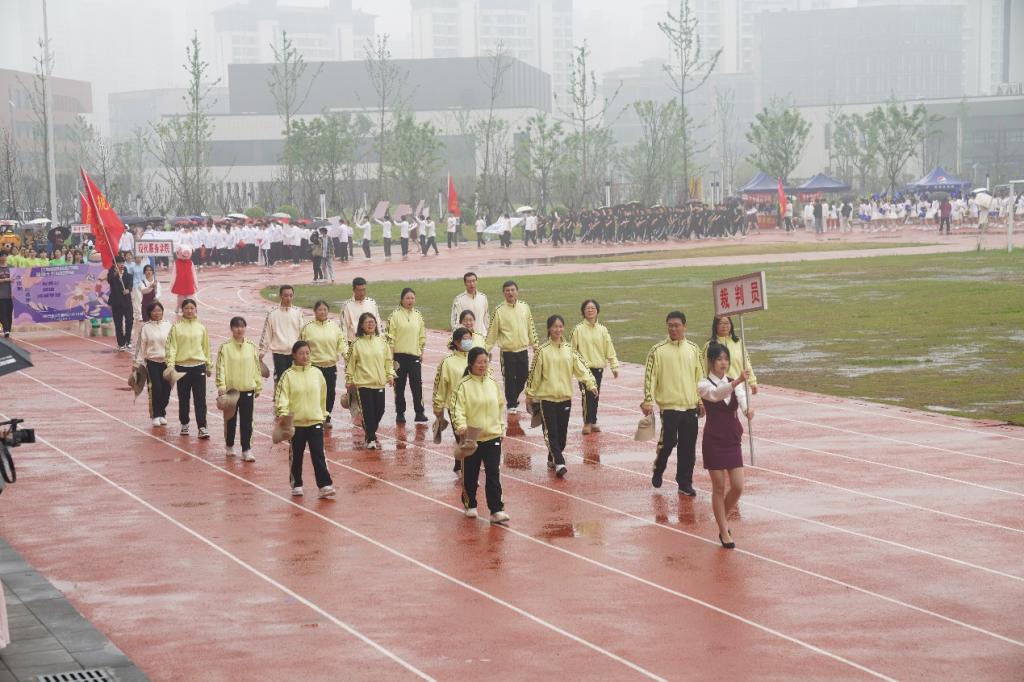 伴随着慷慨激昂的进行曲,国旗队、校旗队、彩旗队、裁判员代表队统一着装,踏着铿锵的节奏,迈着坚定的步伐,带着饱满的精神走向操场,成为主席台前一道亮丽的风景线。